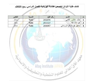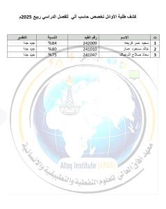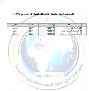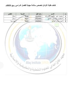الطلبة الاوائل للفصل الدراسي ربيع 2025